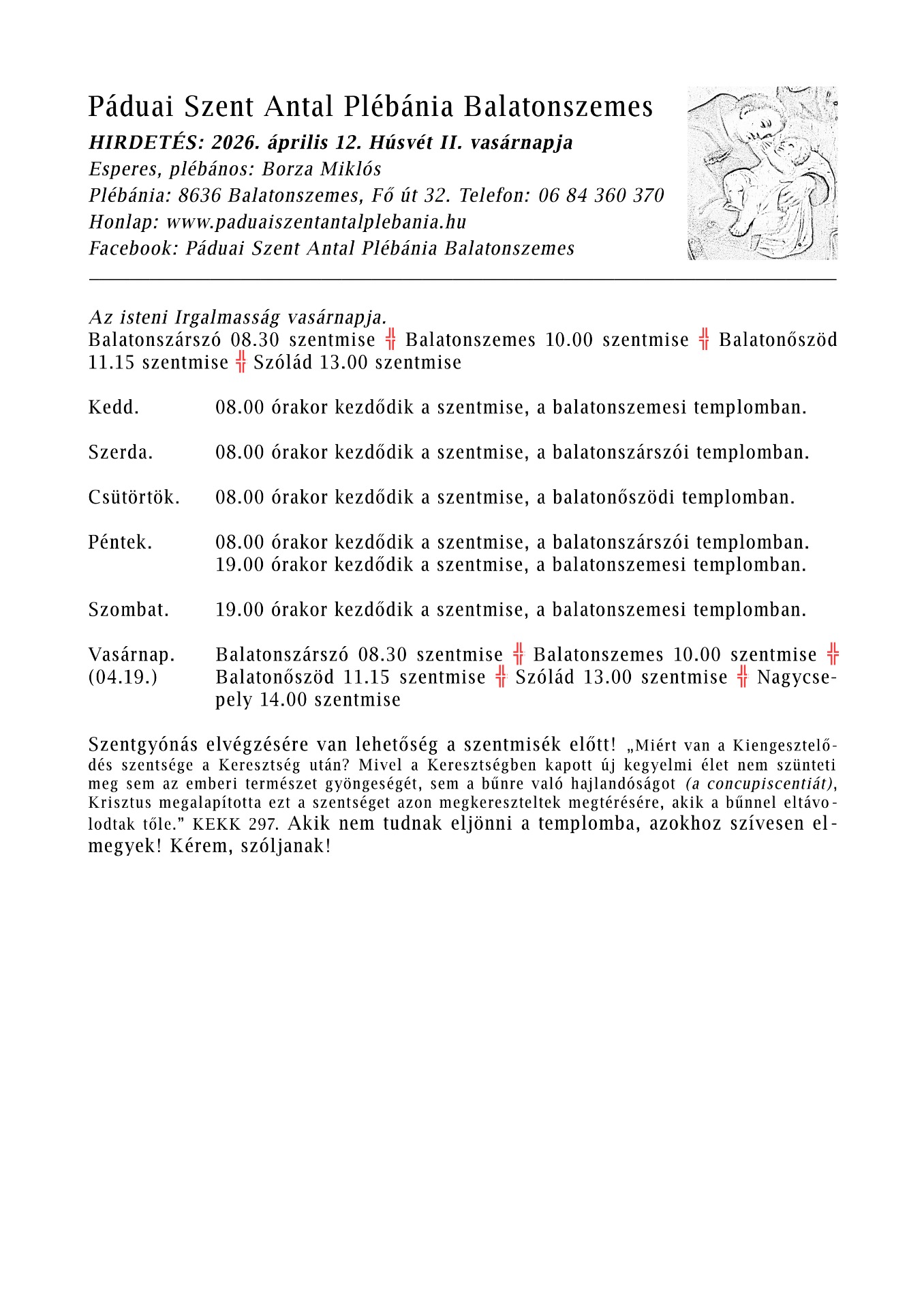 HIRDETÉS: 2026. április 12. Húsvét II. vasárnapja