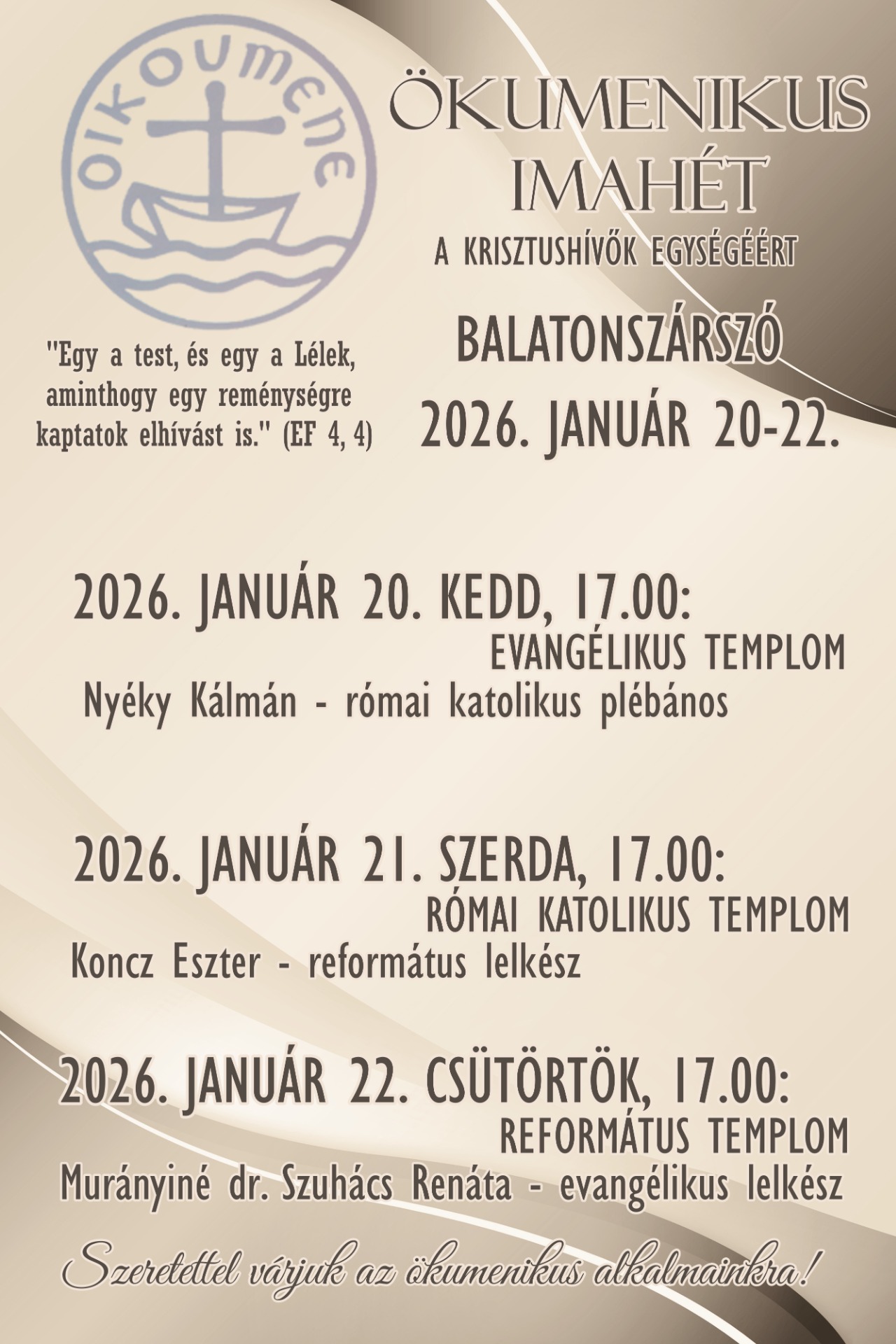 Ökumenikus Imahét Balatonszárszó 2026. január 20-22.