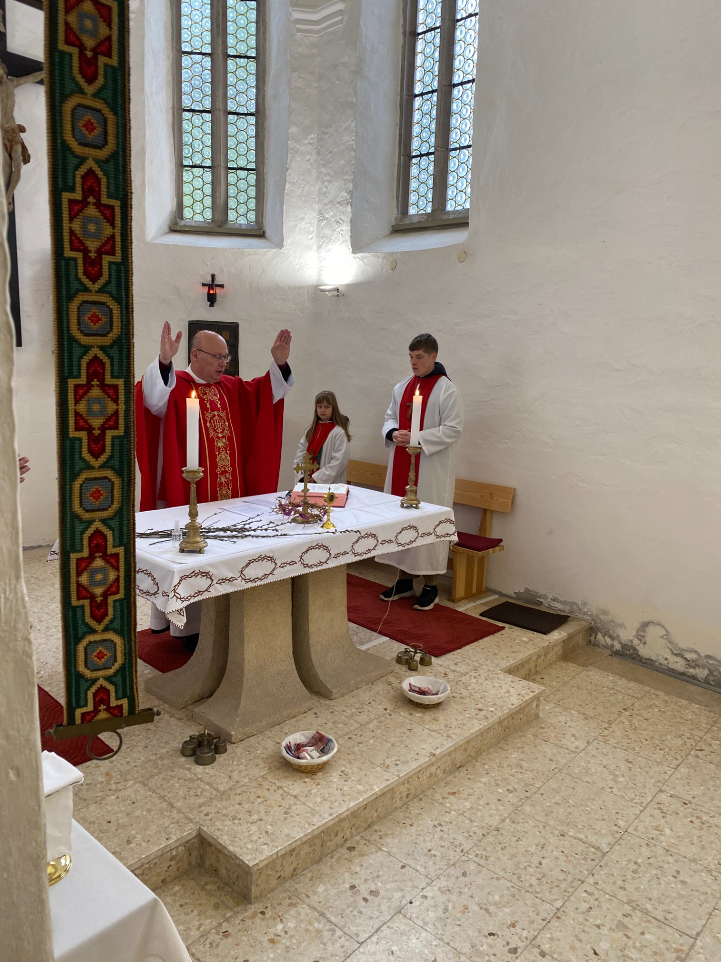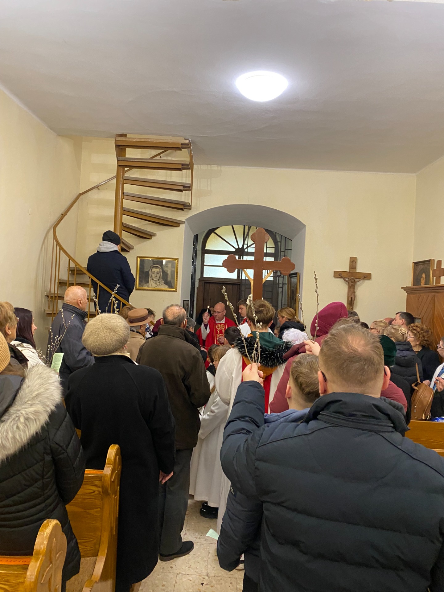 A Virágvasárnapi zord szeles időjárás a híveket a templomba szorította, az ágak megszentelése a templomban történt, a körmenet azonnal a szentélybe vonult.