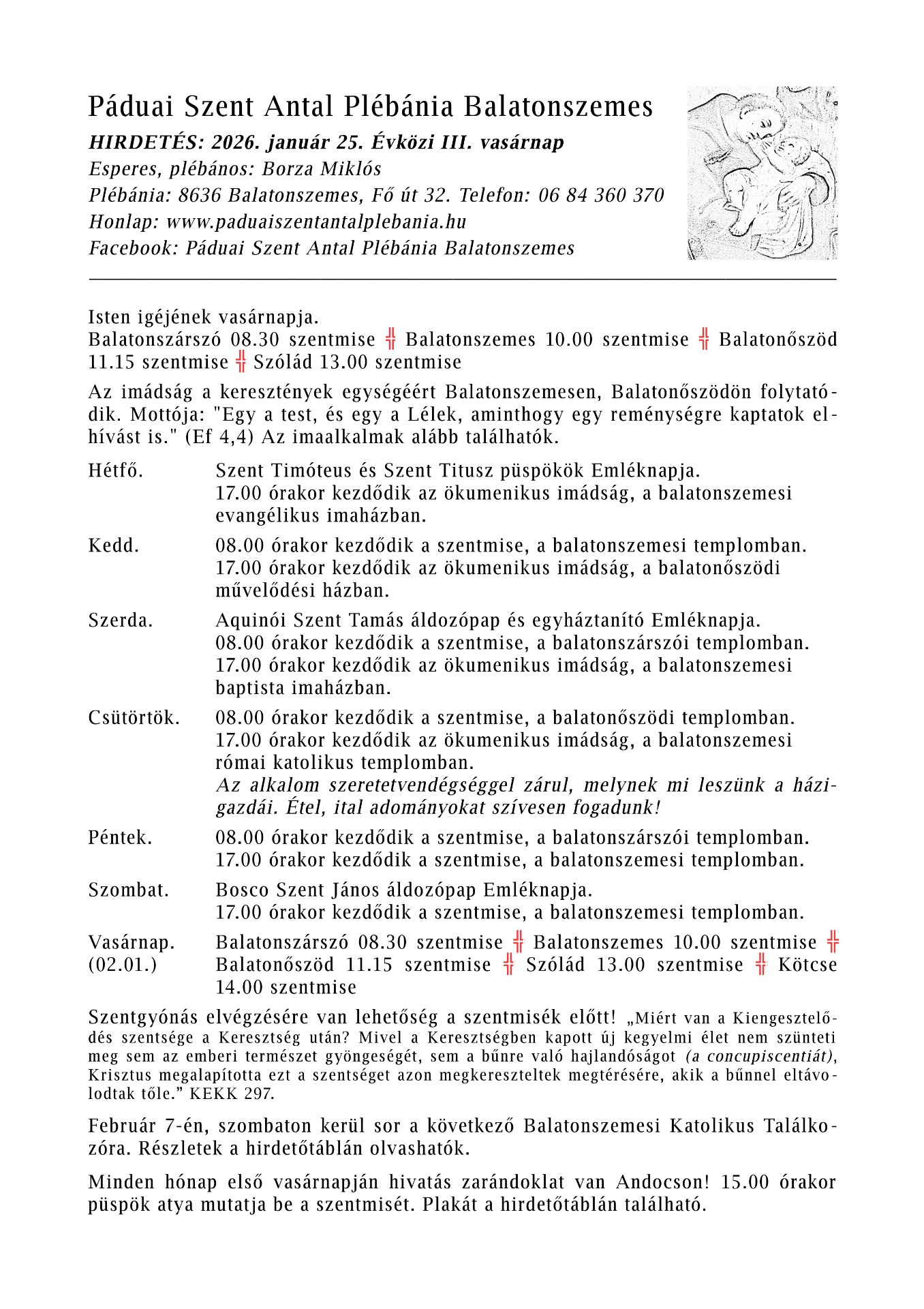 HIRDETÉS: 2026. január 25. Évközi III. vasárnap
